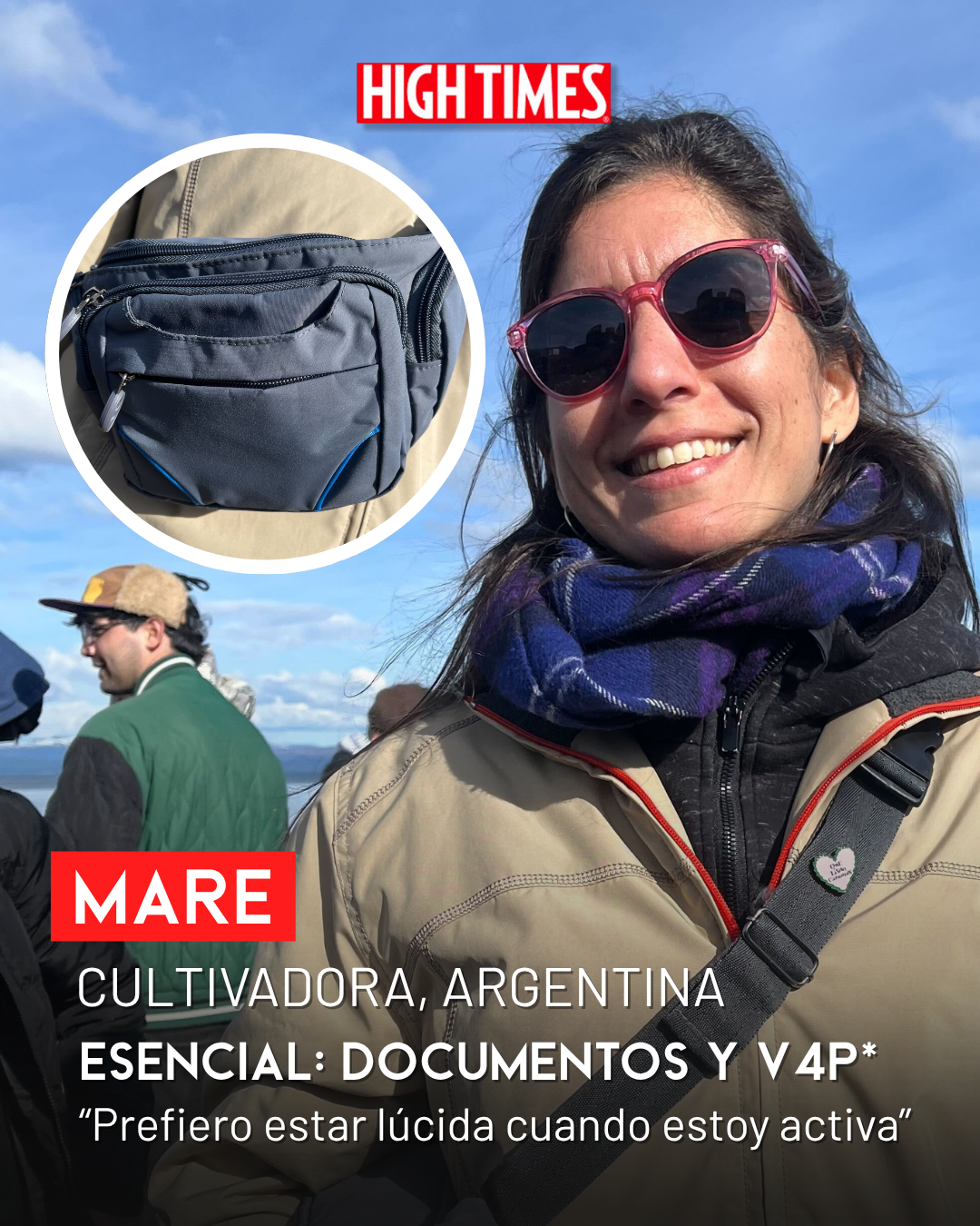 Esencial(es): “No salgo sin mi documento y mi vaporizador de hierba seca. Pero prefiero mantener la cabeza despejada cuando estoy activa, así que suelo fumar recién cuando ya cumplí con mis responsabilidades”.