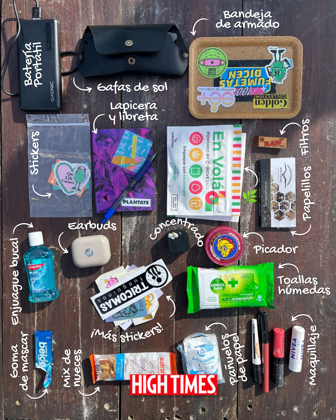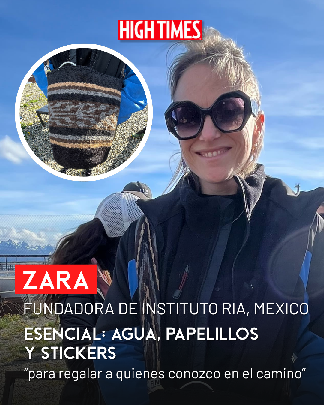 Esencial(es): “En mi bolso o mochila siempre llevo agua, papelillos, algo de flor y stickers para regalar a la gente que conozco en el camino”.