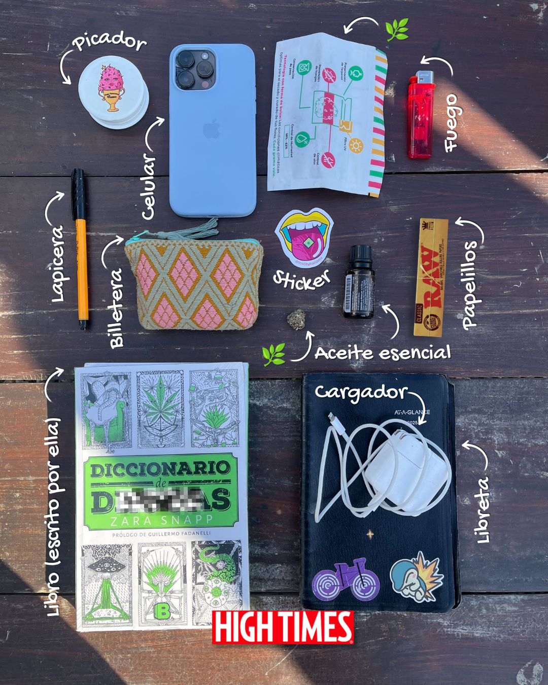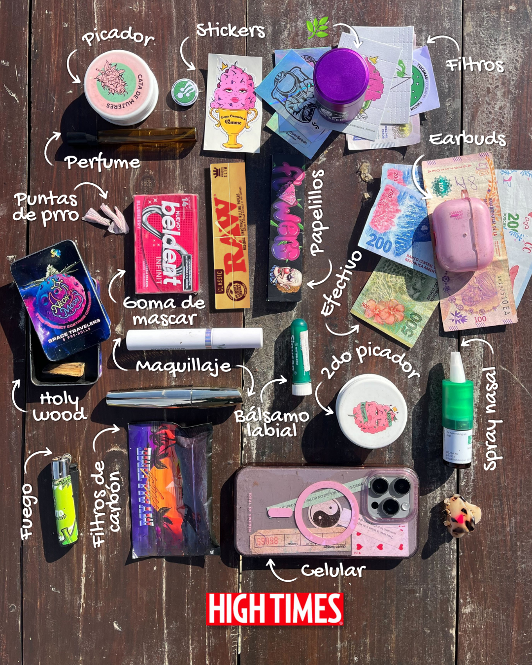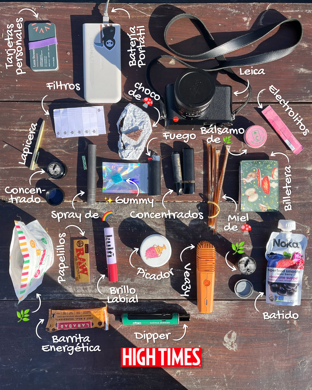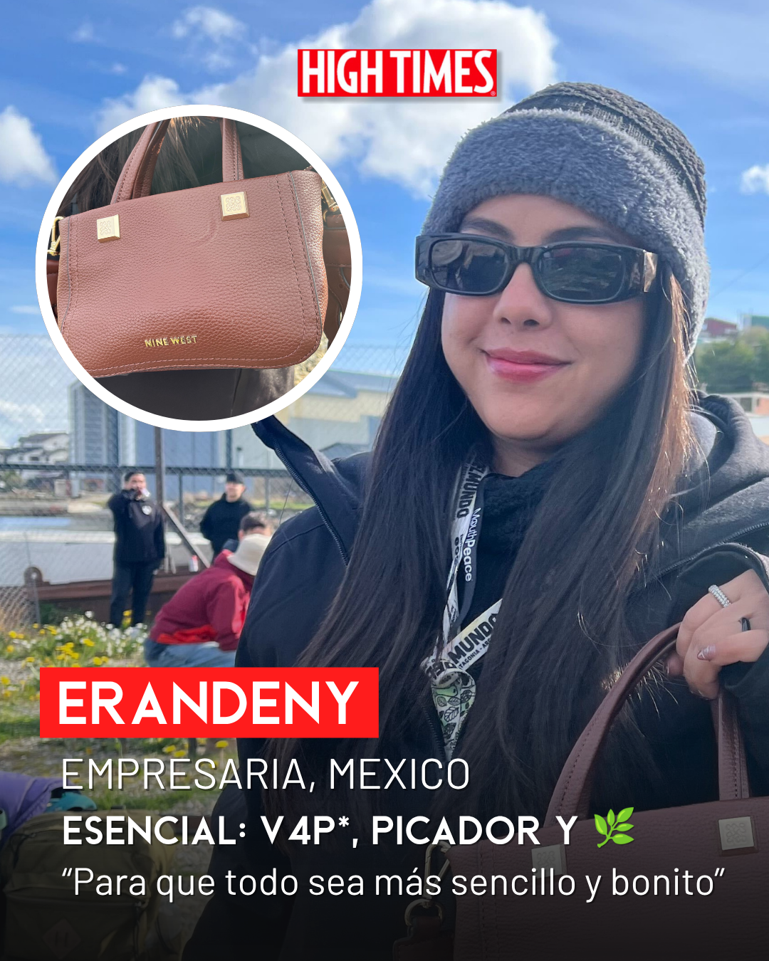 Esencial(es): “No salgo sin mi vape —por reducción de daños— y mi grinder, para que todo sea más fácil y bonito. Y claro, mi hierba”.