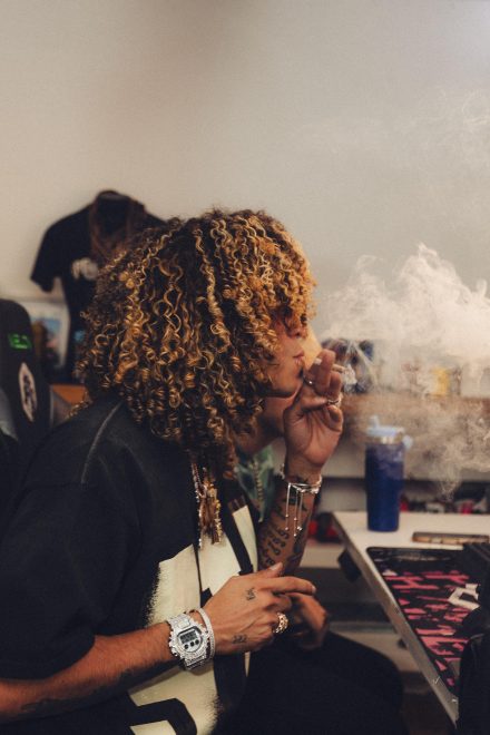 En su carrera hubo un parate: tres meses sin fumar. El famoso break de tolerancia. ¿Qué aprendió? “Fue difícil, no podía dormir bien. Estaba demasiado acelerado, tomando decisiones rápidas que después me arrepentía. La hierba me da tranquilidad, una paz interna. Cuando tengo un problema, prendo un philly y pienso mejor”.
