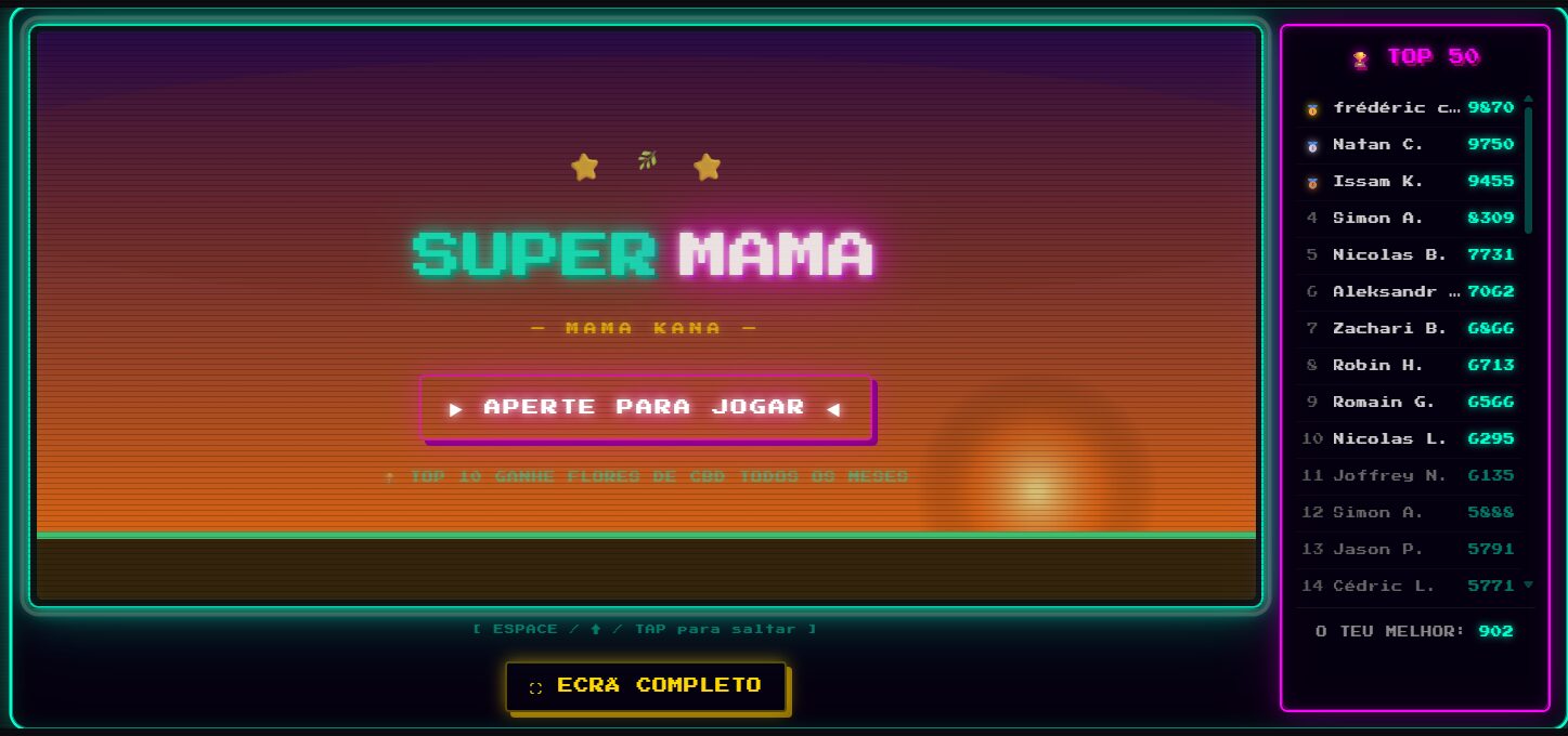 Llamado Super Mama, el juego invita al público a vivir una experiencia arcade retro, con una estética sencilla y una mecánica de juego directa, mientras compiten por los primeros puestos en un ranking mensual que distribuye hasta 1 kg de flores de CBD entre los mejores jugadores.